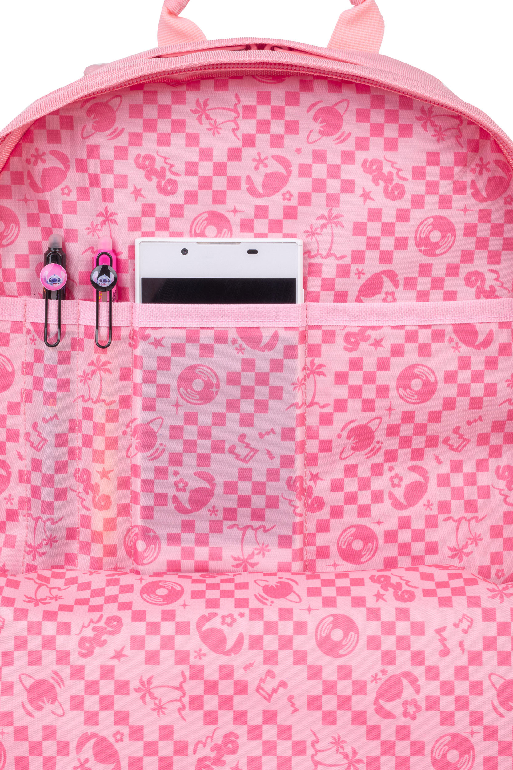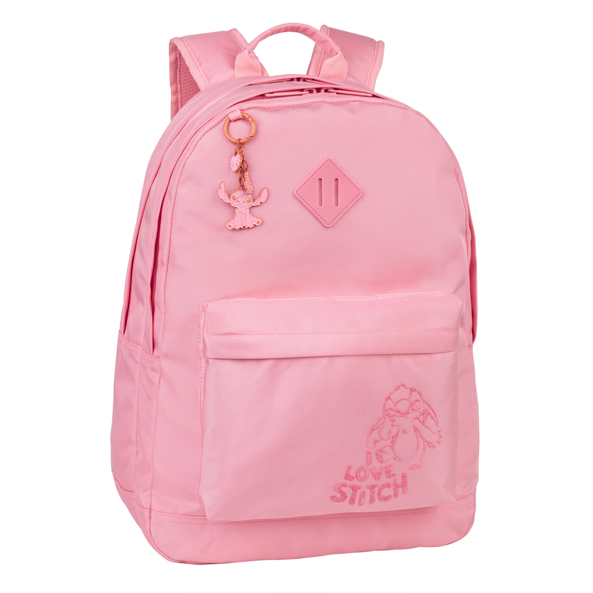 Das aufgedruckte Stitch Motiv auf der Vorderseite und der passende Stitch Anhänger machen ihn zu einem echten Hingucker. Im Inneren setzt sich das Design fort: Das Innenfutter ist mit einem verspielten Stitch Muster gestaltet, das den Look perfekt abrundet.