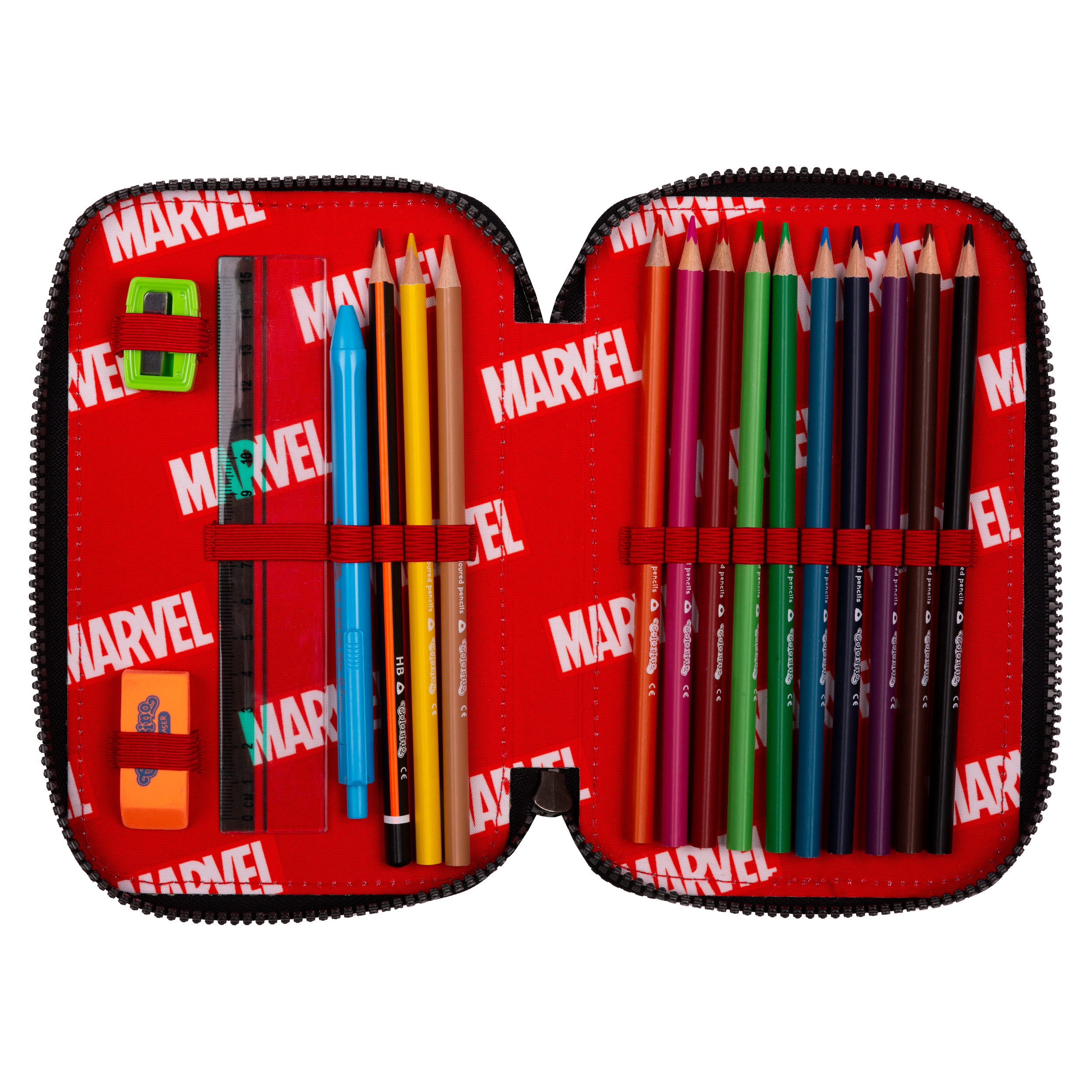 Das gefüllte Etui mit zwei Reißverschlüssen, perfekt für die Ordnung in der Schule und zu Hause. Alle wichtigen Werkzeuge ordentlich organisiert um der Kreativität keine Grenzen zu setzen.