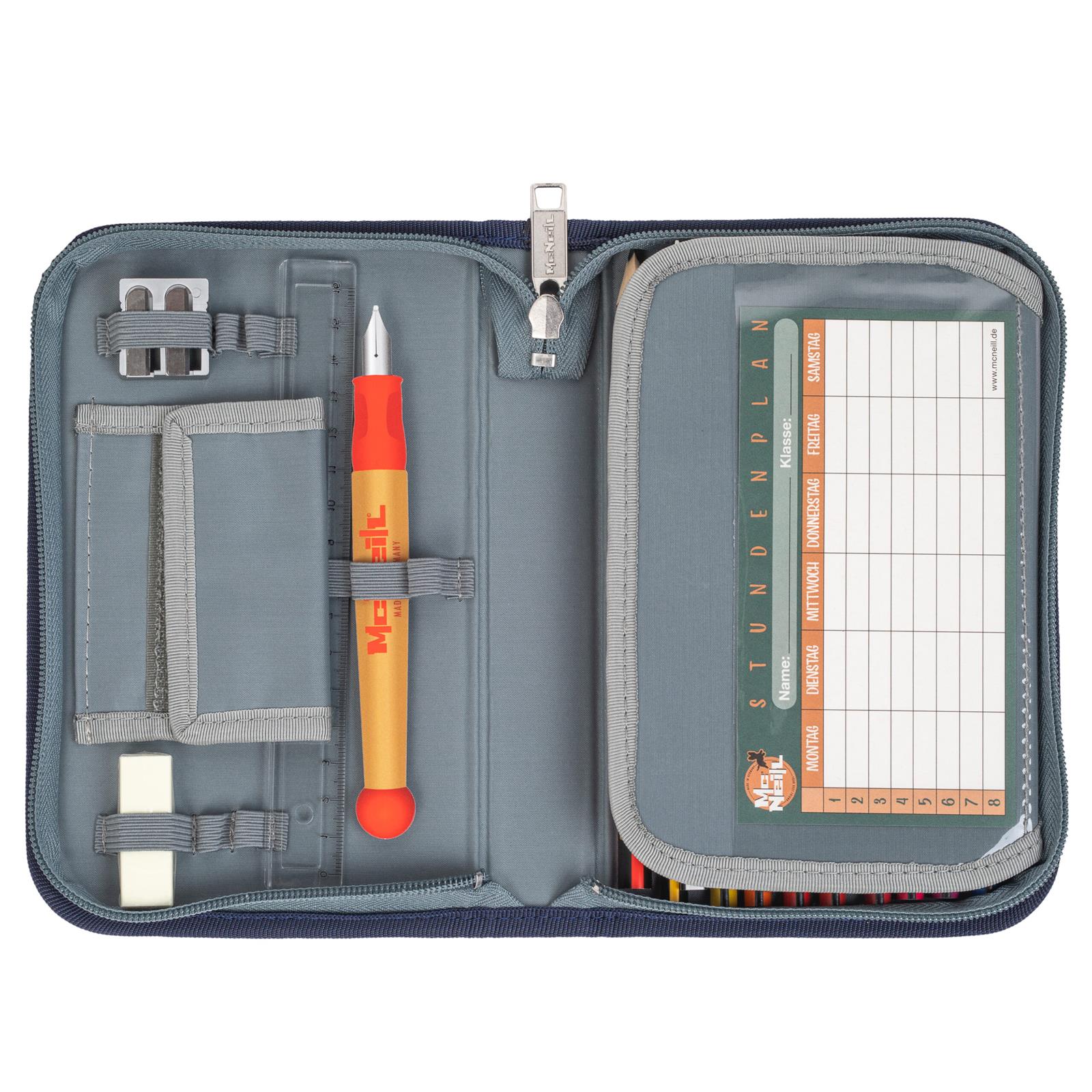 Das gefüllte McNeill Etui ist der perfekte Begleiter für die Schule. Das Etui ist mit vielen hochwertigen Stiften, einem Radiergummi und Anspitzer gefüllt. Das Etui lässt sich sicher verschließen und somit gut im Schulranzen transportieren.