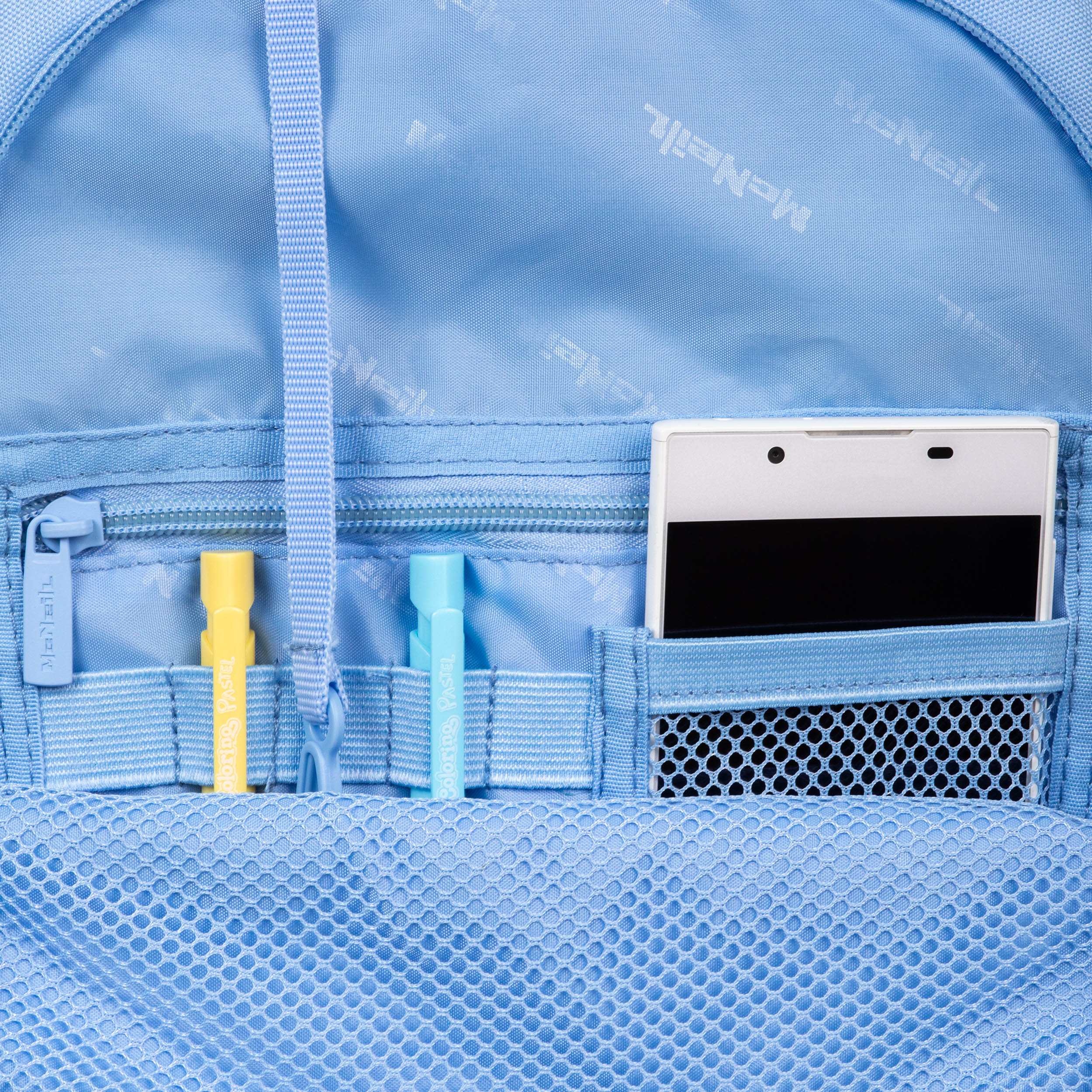 Der neue Schulrucksack MILO von McNeill. Die gepolsterten Rückriemen verleihen ein angenehmes und softes Tragegefühl und die eingearbeiteten Gummibänder verstärken diesen Tragecomfort in dem sie eine nachfedernde Eigenschaft haben. Die Ausstattung mit einem großen Hauptfach mit integrierten Bücherfach, Mittelfach mit Reißverschluß Innentasche und dem Frontfach mit 2 Reißverschluß Taschen, Organizer und Gurt mit Karabiner runden den Schulrucksack ab. Die trendigen Farben lassen den Schulalltag bunt erscheinen. Mit abnehmbaren Beckengurt und einstellbaren Brustgurt, der verstärkte wasserdichte Boden sorgt für einen sicheren Stand. Für die Belüftung am Rücken sorgt unser Air-Flow Rückensystem.