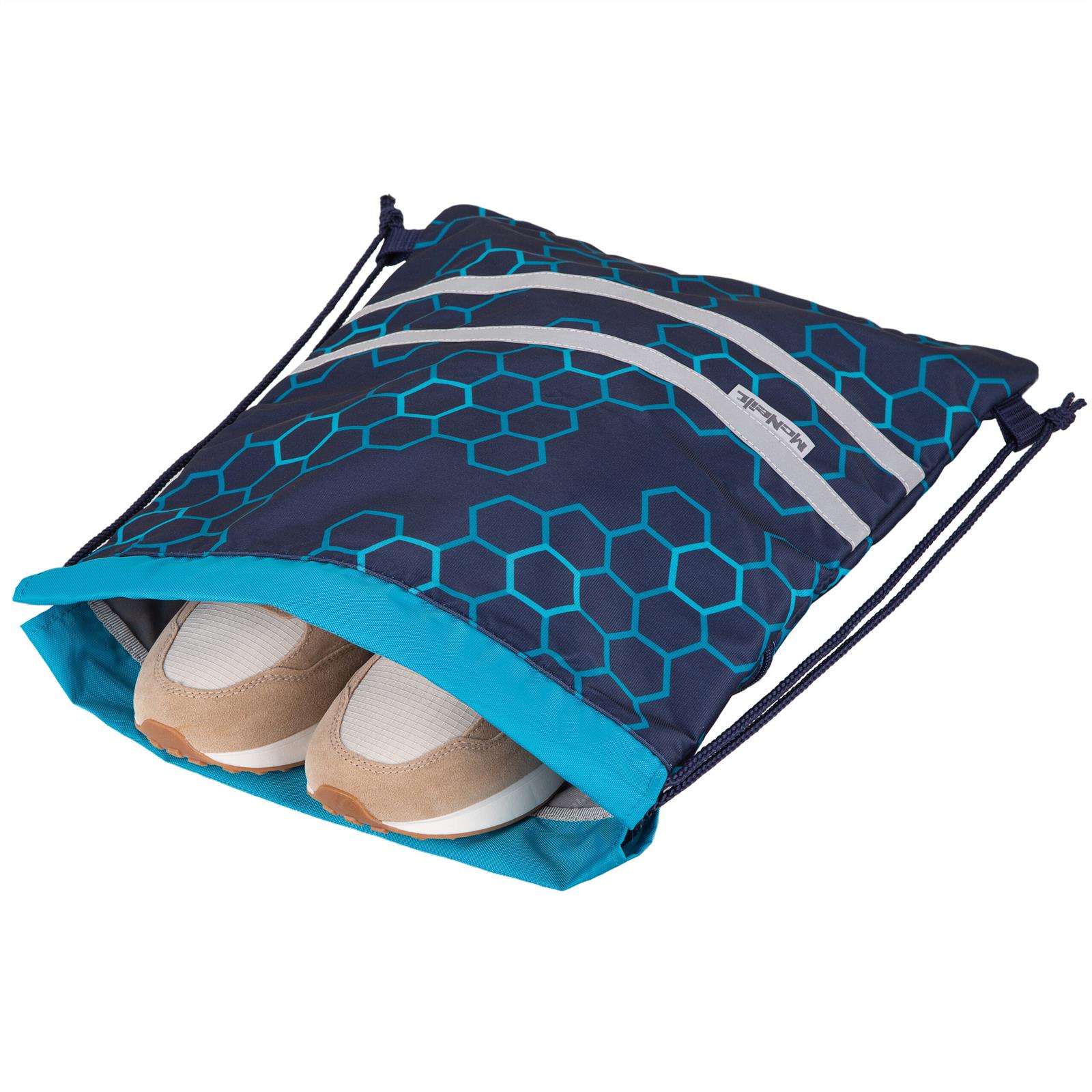 Der McNeill Turnbeutel ist ideal zum Transportieren der Sportsachen. Dank des Kordelzugs kann er einfach in der Hand, über den Ranzen gehängt oder auf den Schultern transportiert werden. Der Sportschuhbeutel kann aber auch wie ein Rucksack getragen werden.