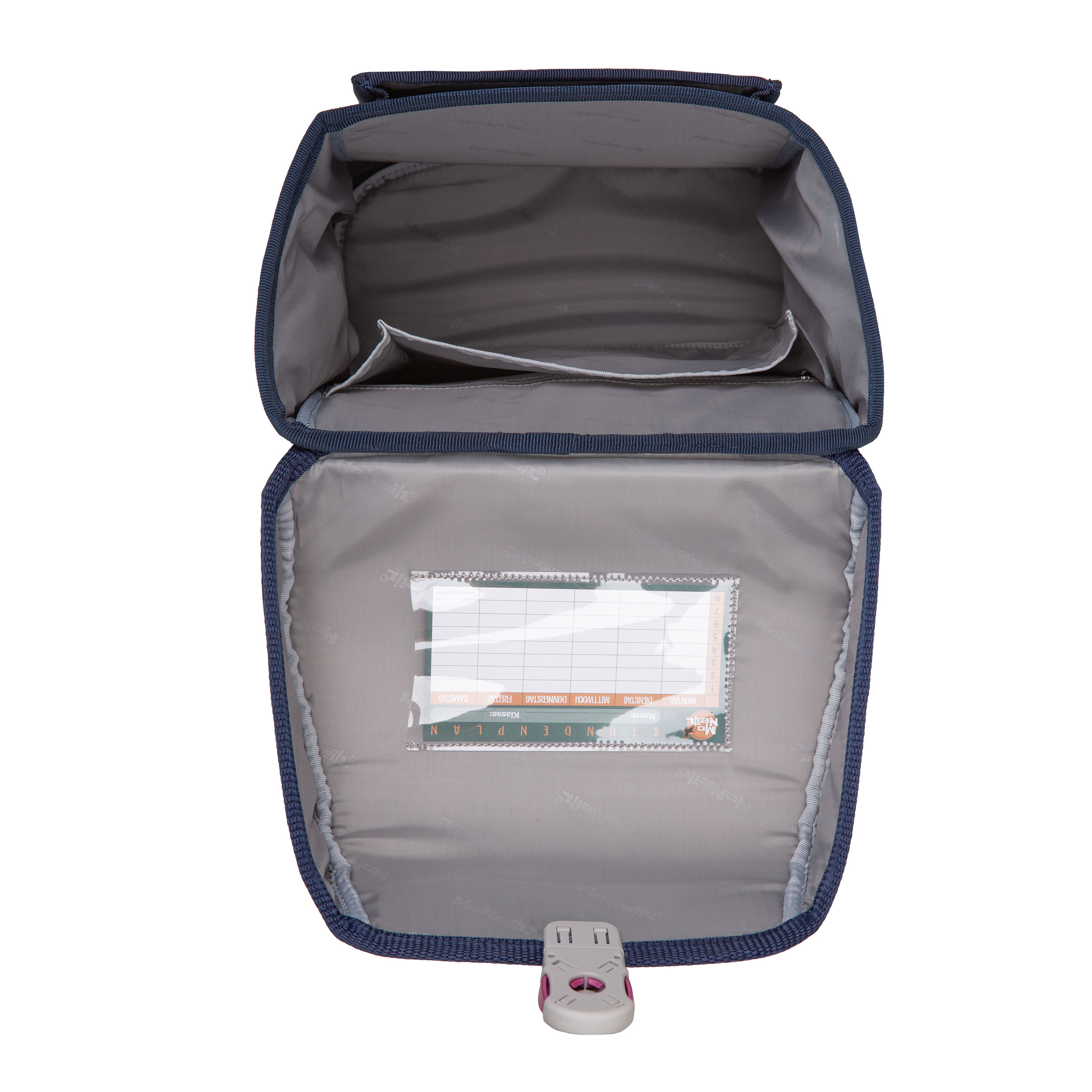 McNeill Tenero – Kollektion 2026- unser neuer stylisches Leichtgewicht. Mit der funktionellen Innenaufteilung, dem stylischen reflektierenden Magnetschloss. Alle unsere Ranzen 2026 sind mit dem ClickFlex Rückensystem ausgestattet. Der McAddy auf der Front ist wechselbar oder einfach ohne McAddy tragen. Die Seitenfächer sind mit Reißverschluss ausgestattet, für die Trinkflasche, Schirm etc.. Mit verstellbaren Bauch- und Beckengurt. Durch die gepolsterten Schultergurte, ein angenehmes Tragegefühl. Die reflektierenden Doppelstreifen sorgen für die gute Sichtbarkeit im Straßenverkehr.
