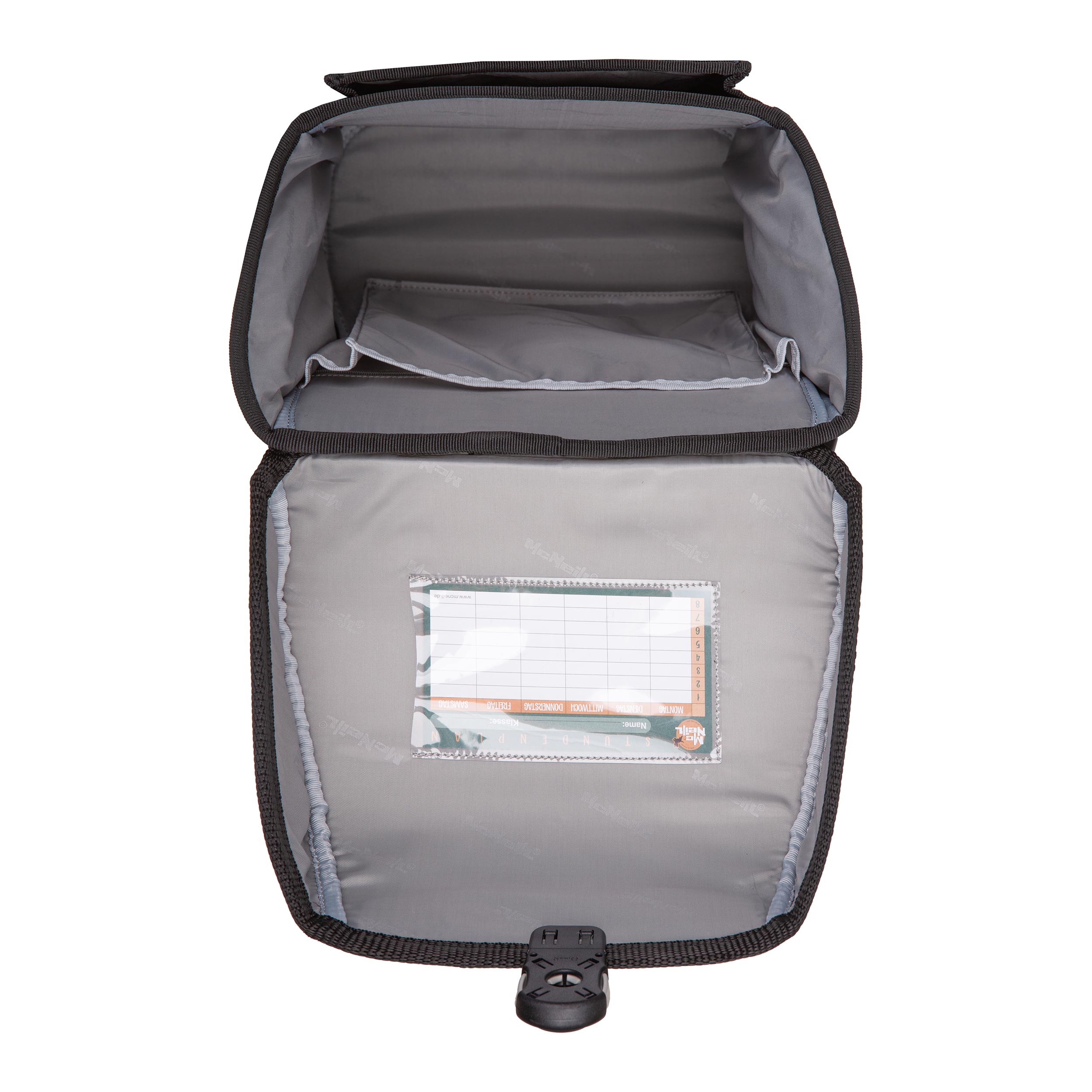 McNeill Tenero – Kollektion 2026- unser neuer stylisches Leichtgewicht. Mit der funktionellen Innenaufteilung, dem stylischen reflektierenden Magnetschloss. Alle unsere Ranzen sind mit dem ClickFlex Rückensystem ausgestattet. Der McAddy auf der Front ist wechselbar oder einfach ohne McAddy tragen. Die Seitenfächer sind mit Reißverschluss ausgestattet, für die Trinkflasche, Schirm etc.. Mit verstellbaren Bauch- und Beckengurt. Durch die gepolsterten Schultergurte, ein angenehmes Tragegefühl. Die reflektierenden Doppelstreifen sorgen für die gute Sichtbarkeit im Straßenverkehr.