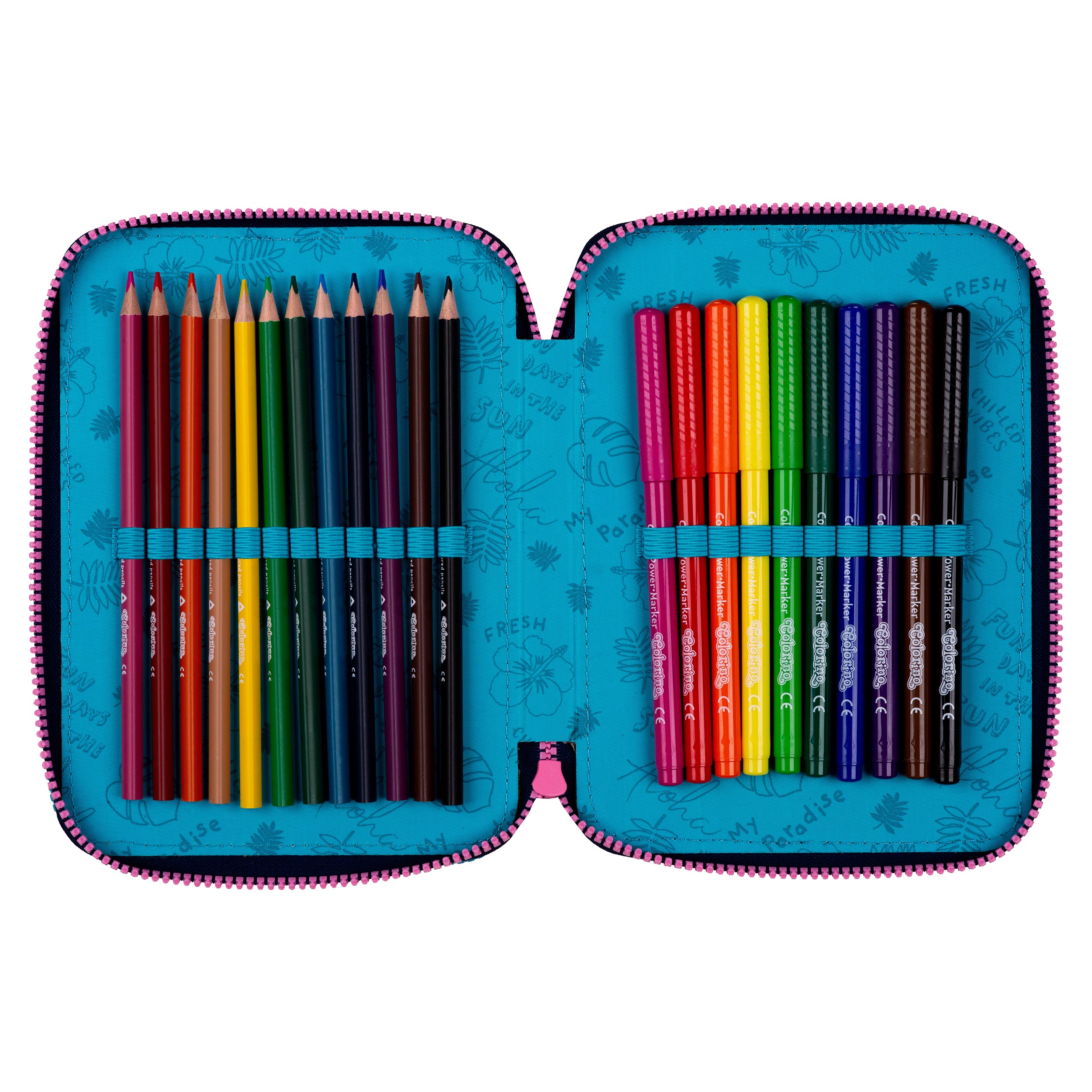 Das 3-Zip-gefüllte Etui.. Die perfekte Lösung für kein Chaos im Mäppchen. Jedes Utensil findet seinen Platz. Mit Buntstiften, Fasermaler gefüllt.